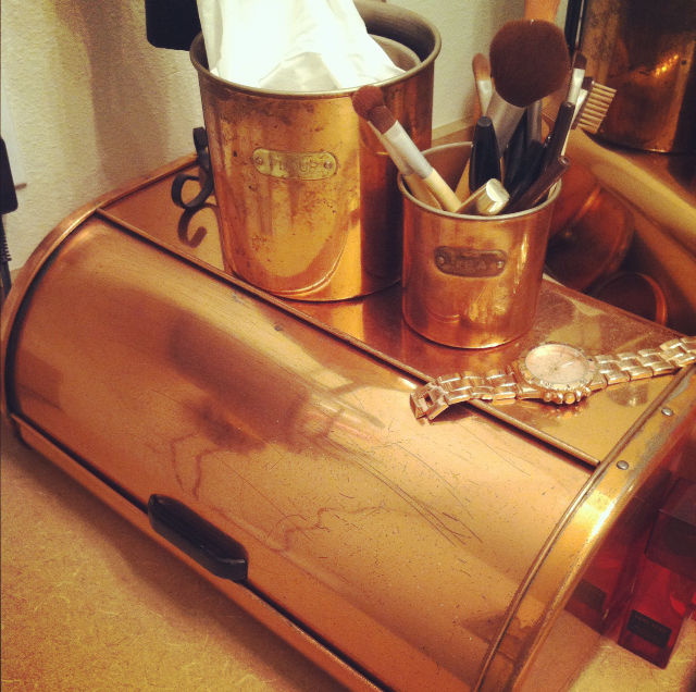 When you purchase something at a thrift store you receive the automatic ok, to use the piece for something other than what it is designed for! This is when you can be creative! I found this copper bread box at a local flea market, and fell in love with it. I knew I had to have it.