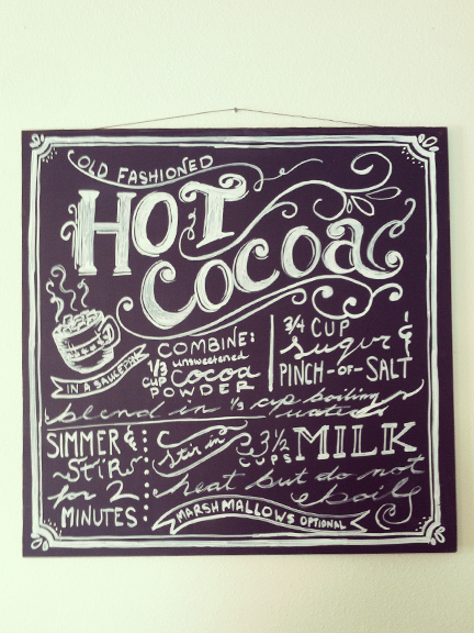 Nothing says Winter better than Hot Cocoa! Great for a Kitchen Decor plus a delish recipe of Hot Cocoa! $48