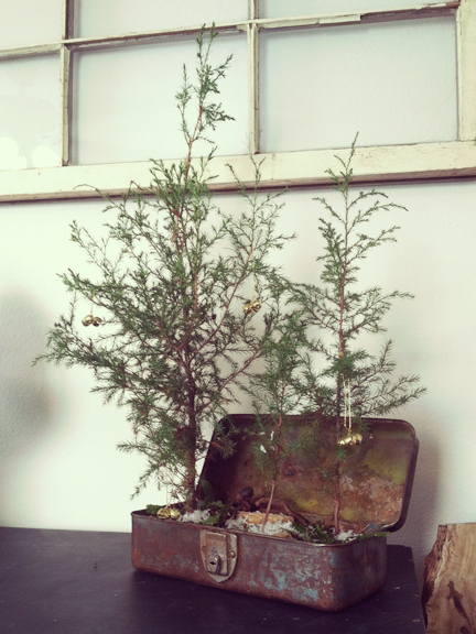 Some are planted in Vintage tins while others are potted and wrapped in burlap (various sizes) $35 to $20